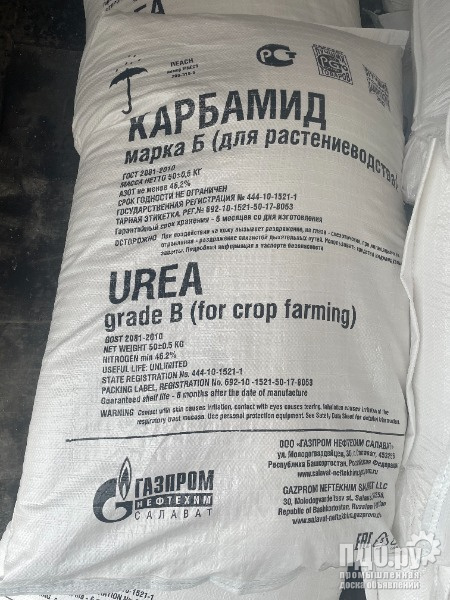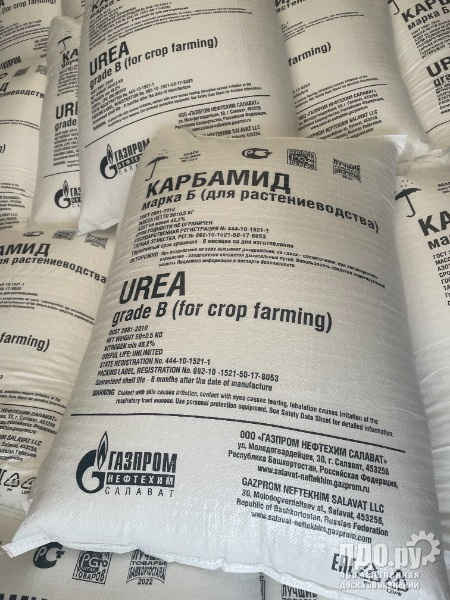 2. Карбамид ГОСТ 2081-2010 марка А или марка Б, мешки по 50 кг или МКР 1000 кг. производство ООО «Газпром нефтехим Салават». В наличие есть (Карбамид некондиция) массовая доля азота – 46 %.